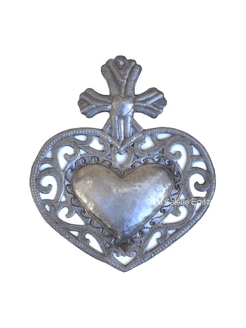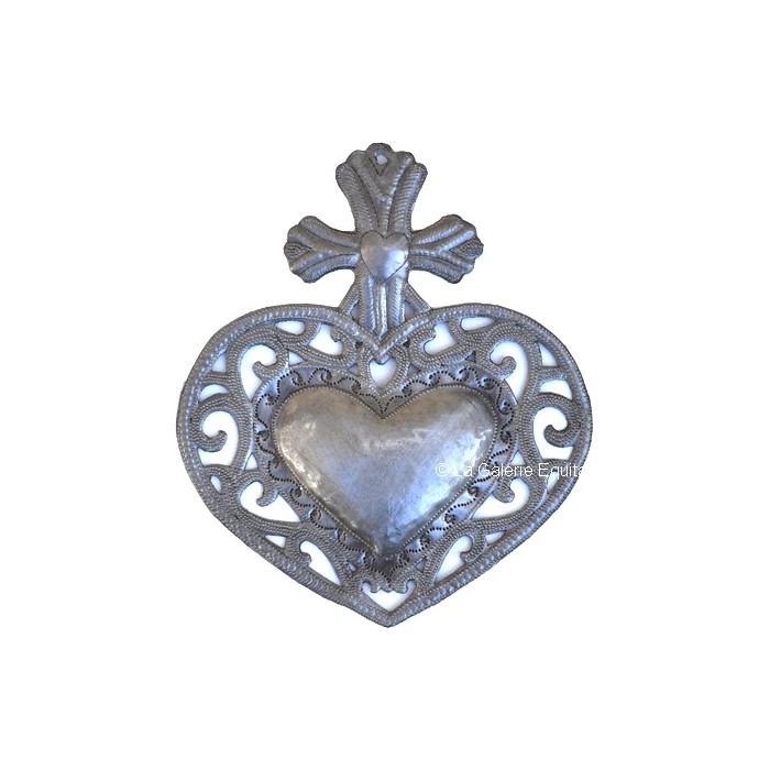 Magnifique cœur martelé et ajouré, surmonté d'une croix.