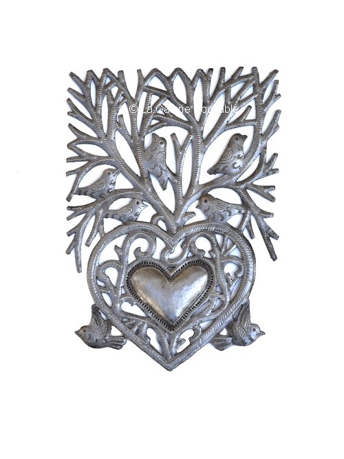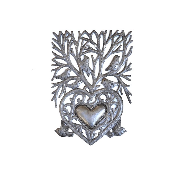 Le coeur est porté par deux oiseaux. Et 5 autres oiseaux sont posés sur les branches de l'arbre.